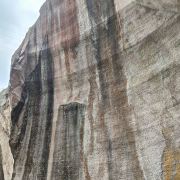 受岩石矿物质作用,岩壁自然形成的色彩瑰丽、形象逼真的岩矿壁画。