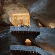 由于长期采石,黄岩石窟形成了奇特的岩洞景观: