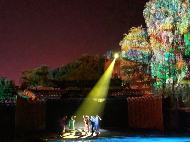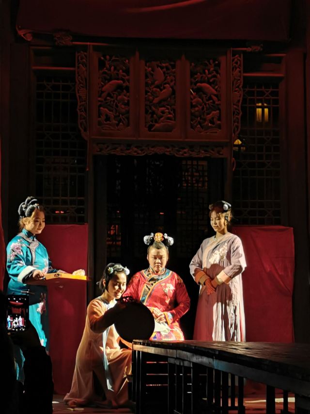 《再回相府》演出依托皇城相府景区院落,围绕皇城相府量身定制,通过陈昌期寿辰赈灾、陈廷敬的梦境和两位诰命夫人的故事构成,切入了陈廷敬和他家族的不同侧面,一窥这位一代名相的心路历程与陈氏家族六百年绵延的秘密。