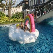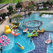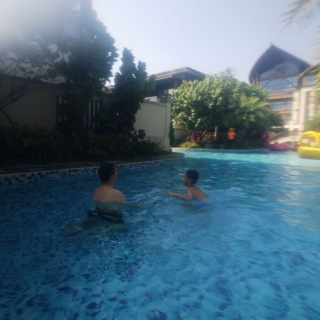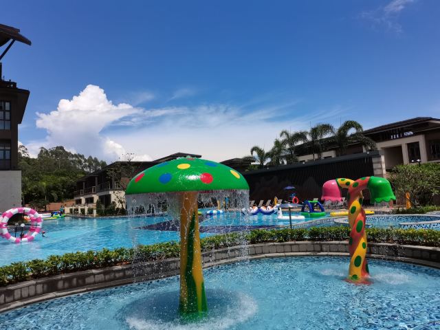 • 特色:粤西最长网红泳道,可乘浮圈穿梭于绿树环绕的泳池,两侧配备玻璃船、火烈鸟等道具。