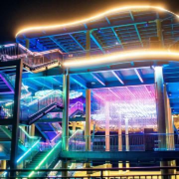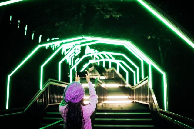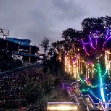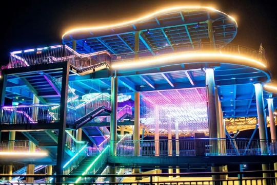 万象天宫,坐落于广东第一峰旅游风景区内。在垂直138米的险峻峰峦之上,以巧夺天工之力打造广东省内首座悬崖主题乐园,犹如仙境之上的天宫宫殿,在广东第一峰的崇山峻岭间感受一番壮丽的感官释放体验。现场灯光、音乐、水幕互相辉映,打造出氛围感满满的动感体验空间,夜幕降临时华灯亮起,灯光水幕秀美轮美奂,足以惊艳你的旅程。万象天宫,匠心打造三重仙境奇遇:一重天,动感音乐随着灯光变幻,在高浓度负离子高空中尽情舞动,放松自我;二重天,光影交错,音乐起伏,酷炫炸裂,在沉浸似的艺术之境,放空自我;三重天,多个省内首创的娱乐体验项目,让你在靠近天空的地方,释放自我。