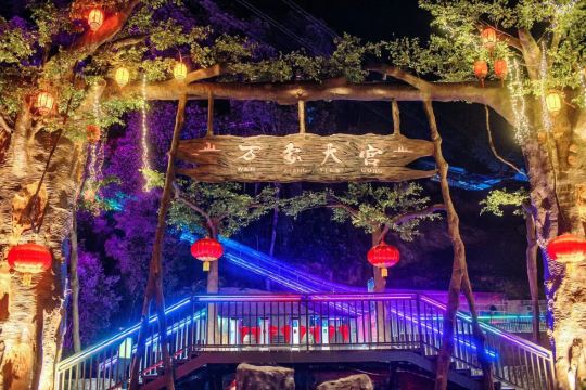 5分 超棒第一峰万象天宫有挺多项目可以玩的钢琴栈道啊,摩天飞毯等等。白天晚上都很适合玩。万象天宫在第一峰温泉度假村里面,还有温泉可以泡,夏天还有山泉水泳池。玩的东西挺丰富的。