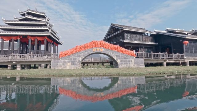 这是一个主题文化公园,旨在展示包括苗族、姚族、族、壮族在内的几个少数民族的传统生活方式和文化。