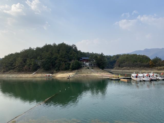 B线船票加门票是75,不贵,坐船到岛上要半个小时,水质还是很清。不过来的时间不太好,枯水季节,整个景区都干干的。