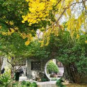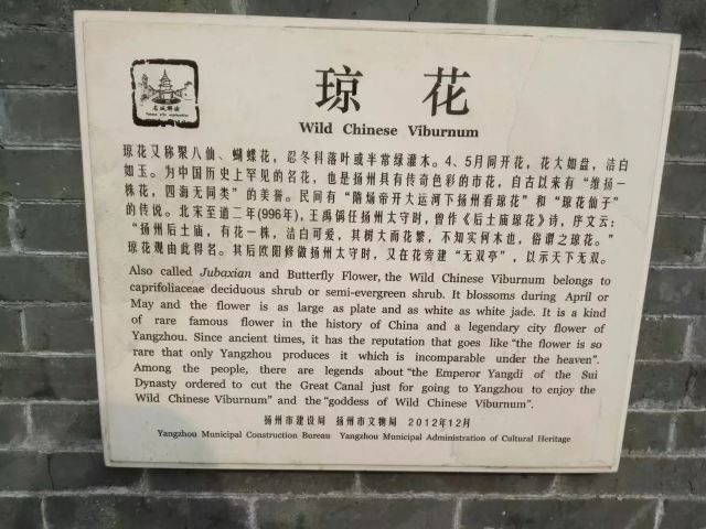 琼花观在东圈门历史街区的东端,旧称蕃釐观,属于路过顺便看一眼的小景点,因观内种有琼花而出名,平时游客不多,4月-5月花开时却人头攒动。了解一下道观的历史,古人与琼花的故事,会让你觉得它有一层神秘色彩。琼花观始建于汉代,现在看到的建筑多是现代重修的。道观门口的牌坊上写有“蕃釐观”三字,步入牌坊后的山门,便能见到主殿三清殿,该殿初由淮南节度使高骈于唐僖宗中和二年(公元882年)建造。三清殿前种着银杏、龙爪槐、琼花、老榆树,虽然琼花早已不是过去的原物,但并不妨碍游客前来赏花的热情。琼花盛开时,每一簇都有八朵小花围绕着中间的花蕊,犹如洁白的玉盘,非常美丽。三清殿后的花园小巧玲珑,里面的琼花台与《儒林外史》作者吴敬梓晚年的落魄故事有关,伫立着的亭子源于欧阳修在琼花旁修建的无双亭。此外,道观内还有一座玉钩古井遗迹。琼花观内有时会举办书画展览,加上紧邻扬州市第一中学,有时候会传来朗朗读书声,颇有文艺气息。从琼花观西边的小巷进入可以到达东圈门历史街区,东圈门北边300米是东关街历史街区,可一并游览。