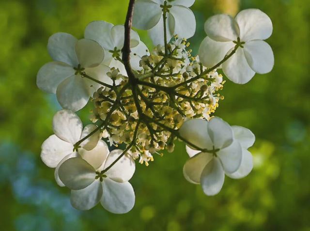 5分 超棒想那汉唐之际的泱泱国土,人们对花卉的认识当然远不及现在这样普及,无论栽种莳养,还是构建描画,尚处在初级阶段。所以,口耳相传的结果,便是汉代的扬州城东有一位道号为蕃厘的仙人,与人谈及仙家的花木之美如何如何,世人不信,他便取下一块白玉种在地下,片刻之间,埋玉之地长起一棵花树,花型奇特,花香馥郁,花瓣花蕊仿若美玉雕琢,玉树琼花由此得见。故名琼花。自此,每当烟花三月花开之际,这株异树奇葩,或若蝴蝶戏珠,又似八仙起舞,赏花者无不叹为观止,就连花色的纯净洁白,也视若世外仙姝一般,把个人世间的姹紫嫣红全给比了下去。更有好事者,还特意在近旁为之建造琼花观,烧香叩首,奉若神明。