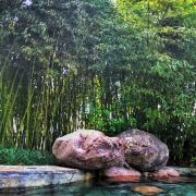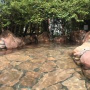 花都温泉度假区利用天然优质矿泉水建造了特殊汤池、五行池等80余座风格各异的室外园林式汤池和室内中庭式汤池,并开发了名花汤、名酒汤、名木汤、石板浴、天体浴等适合各类客人的SPA设施。步入花都温泉,感受拂面的春风,倾听温泉的韵律,体验不同功能的汤池。