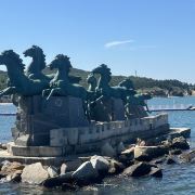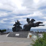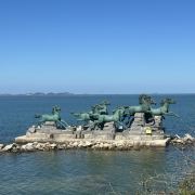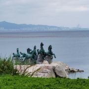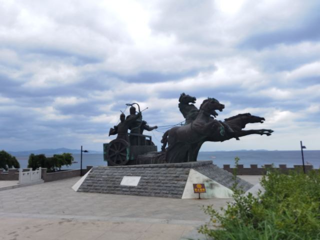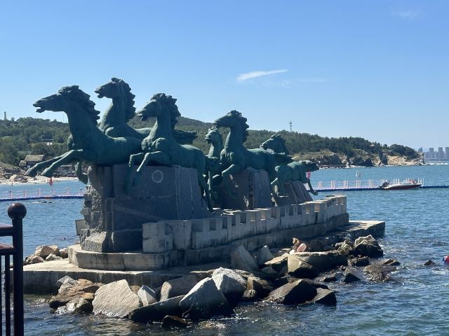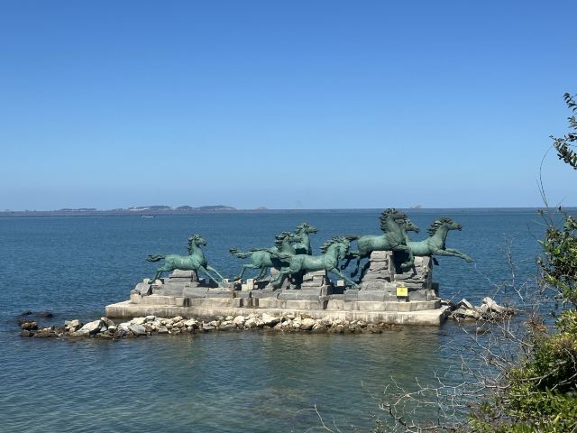 接着,我们前往了白马广场,这里是养马岛的标志性景点之一。广场上有一座白马雕塑,栩栩如生,仿佛随时会奔腾而起。站在广场上,可以俯瞰整个养马岛的美景,远处的山峦、大海和岛屿构成了一幅绝美的画卷。