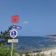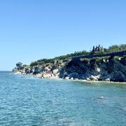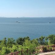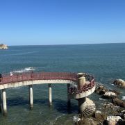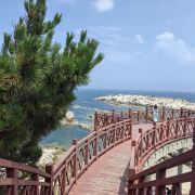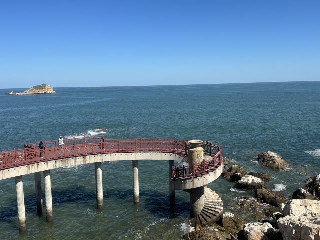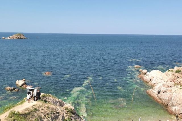 无论骑行还是开车都要沿外圈即靠海一侧的车道前行,因为大部分观光路线都是单向道!第一站就是獐岛,应该是岛上游客最多的一个点,这边买水果、饮料也是最贵的,赏景、玩水后面几个人少的景点都更好。秦风景区和莲花夕照都是游客比较多的。