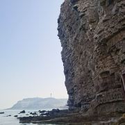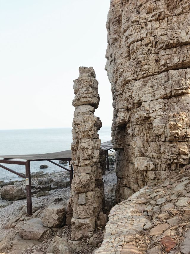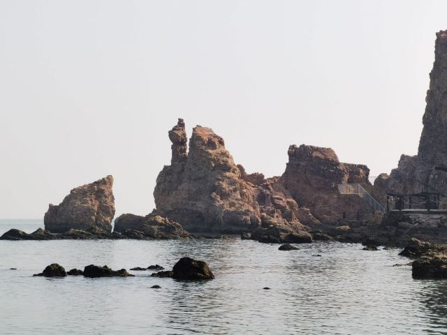 下午玩北岛的月牙湾,就能看到沙滩上的五彩球石,这些卵石晶莹如珠,造型色彩相间,花斑图案精美,很是神奇。景点内海豹园栖息着国家保护动物斑海豹,憨态可掬,表演遵循天性,传递“守护海洋生态”的理念,适合亲子家庭感受和谐之美。接着前往九丈崖,看高耸入云的悬崖从海边拔地而起,置身悬崖下时,仰望绝壁万丈,除了感慨大自然的造化,更多体会到的是一种震撼。这里留存商代遗址,自然景观丰富:鸥翅湾形似海鸥,龙舌礁如石龙探海,是地质爱好者、摄影达人及旅人理想之选。傍晚灯塔映霞光,海面上呈现一副残阳如血现象,远处大小黑山岛渐成轮廓,似剪影、如墨画,美不胜收。