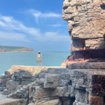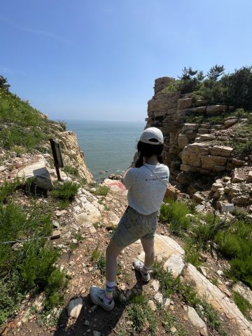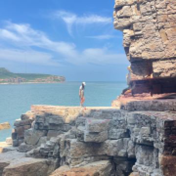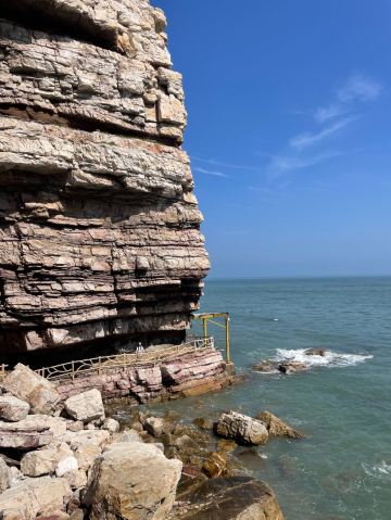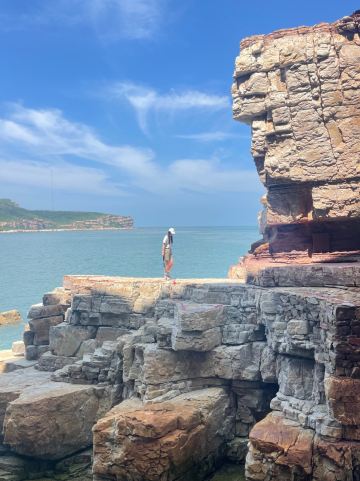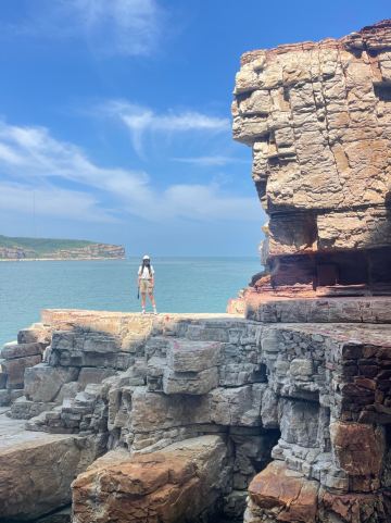 3️⃣大黑山岛码头做摆渡车很快到了龙爪山景区,如果想拍网红照片,进了景区大门往左手转,顺着走就到了网红机位。我们起个大早赶个晚集,傻了吧唧直接右转,懵*的沿海一圈,虽然景色很美,但这一圈下来,再来拍照队伍已经很多人! 网红机位有代拍小哥哥,没问多少钱,后悔应该找他拍,咳!