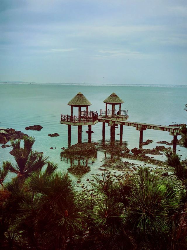 2分 一般看看风景还不错,对面养马岛,天气晴好时能看见远处的威海,海水浴场不好,没有冲水设施、沙滩窄,还有快艇在人群中冲撞。