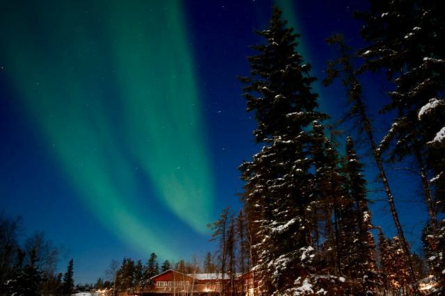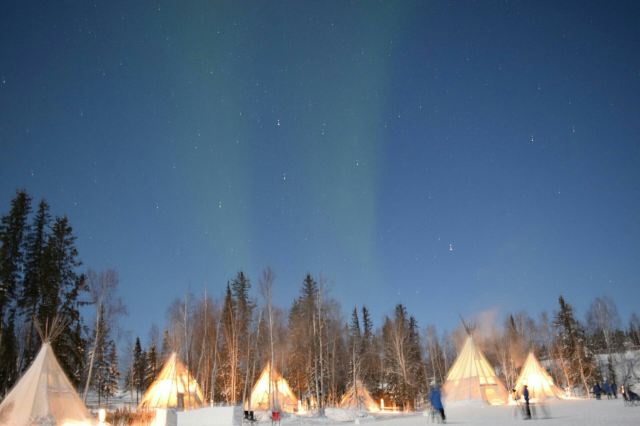 极光村位于耶洛奈夫Franklin Ave上,距离耶洛奈夫市中心很近。在2000年11月的时候,极光村诞生了,创始人是当地的原住民Dan和Gladys Morin。极光村拥有可以容纳400人的场地,可以在这里有足够的空间去欣赏、拍摄极光。这里离磁极很近,所以极光出现的几率要高于别的地方。一般到晚上的9:00至12:00的时候,您会看到这里看到美丽的极光在天际蔓延,带给您一场自然的灯光表演秀。极光村的特别之处是营地用的原住民麋鹿皮帐篷,晚上的时候,帐篷里面灯火通明,在极光和黑夜的衬托下,显得格外漂亮,同时还能够让您体验到原住民真实的历史文化,这里的设施齐全,而且还提供宵夜。周围的几个小山丘都是拍摄极光的好去处,帐篷沿湖排列,在夏末和冬日,您可以找到一片湖,在上面守候极光的到来,用相机记录美好的瞬间。