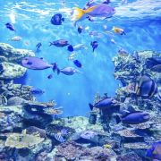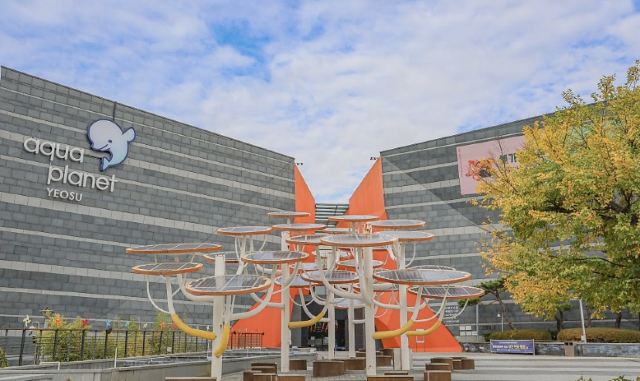 韩华集团在2012丽水世博会中设立了韩国国内大规模的水族馆““Aquaplanet”,”丽水Aqua Planet水族馆拥有相当于4层楼的高度,总面积达16400㎡,并且拥有6000t级的水族箱,实属韩国国内大的水族馆。该水族馆的规模是韩国现有的首尔63海底世界(1000t)的6倍,也是首尔COEX水族馆(2300t)和釜山水族馆(3500t)的两至三倍。水族馆在世博会结束后也将作为世博会的设施之一而不被拆除。它是一间符合丽水世博会主题——“有生命的海洋,会呼吸的沿岸”“的环保型水族馆,该水族馆也因此吸引了各界的眼球。水族馆的顶部设置了应用太阳光发电技术的设施,水族馆中生存的海洋动物们可以通过利用太阳能的生命保障系统来获得适合自己生存的环境。另外,为了向海洋生物们提供生存必需的光线,水族馆中设置了可以从太阳光中获取光线的“太阳光采光区域”;为了向鱼医生提供符合其生存的水温,水族馆还设置了从太阳能中获取动力的环保水族箱——”鱼医生区域”。水族馆分海洋动物馆、生态馆和体验馆三个区域,白海豚、贝加尔海豹、南美海狗以及海龙等280余种海洋生物将在水族馆中进行展示,展示的总数量达到3万3千只。