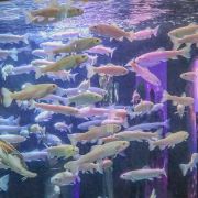 3分 不错长隆海洋公园完爆这个,专门去实在没必要,不大,品种不是很多,有美人鱼表演,有大白鲸(还是白豚)表演。纪念品商店中规中矩。