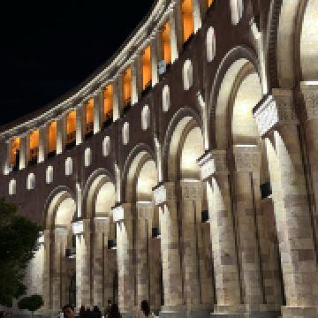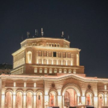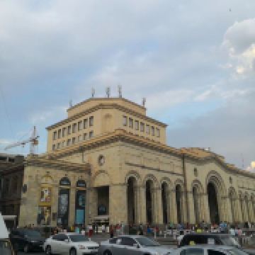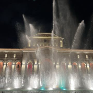 共和国广场的周围,包括了历史博物馆,歌剧院,亚美尼亚政府的办公厅以及各种餐厅酒店。建筑以红、黄色调交错的凝灰岩建造,亚美尼亚正式的官方庆典都在这里举行。晚上来这里更是灯火通明,映照在广场周边古典的建筑上,十分雄伟壮阔。,配上每晚这里的音乐喷泉,让人必须要来这里打卡才算到过埃里温。