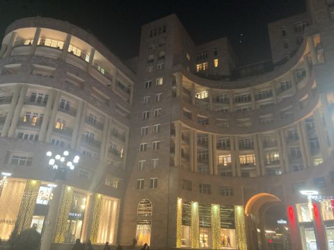 a当夜幕降临,灯火辉煌,音乐喷泉起舞,共和国广场化身为城市中最璀璨的明珠。那绚丽的灯光和优美的音乐,让人仿佛置身于一个梦幻般的世界。