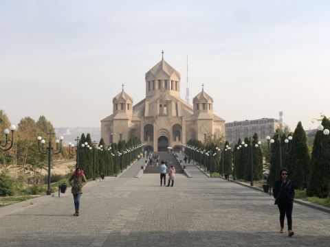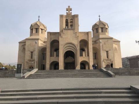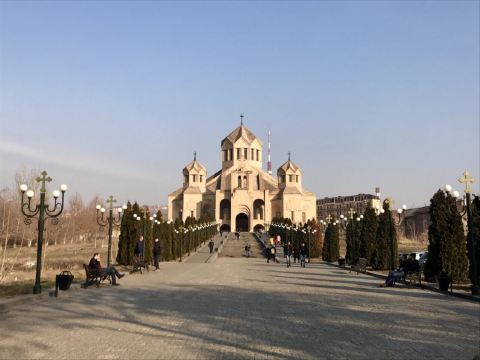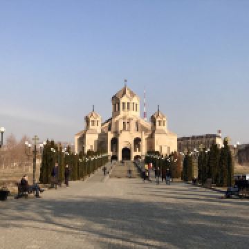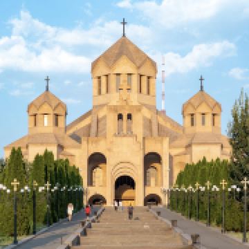 埃里温大教堂又称圣乔治大教堂,是埃里温规模较大的亚美尼亚使徒教会的教堂,和第比利斯圣三一大教堂并为南高加索地区规模较大的宗教建筑,在埃里温市内多地都可以看到。埃里温大教堂于1997年4月7日开始修建,2001年9月23日奉献。教皇保罗二世在奉献之后参观了该教堂。