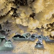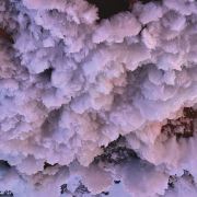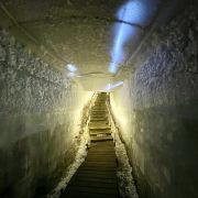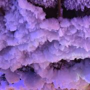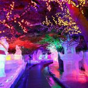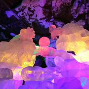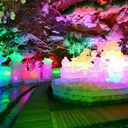 冰洞的洞壁是各种形态的熔岩,洞内温度很低,洞内的冰块晶莹剔透,还会举办冰雕展览。