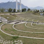 ⑰三峡枢纽区水土保持科普游廊:单层玻璃屋,锁着门