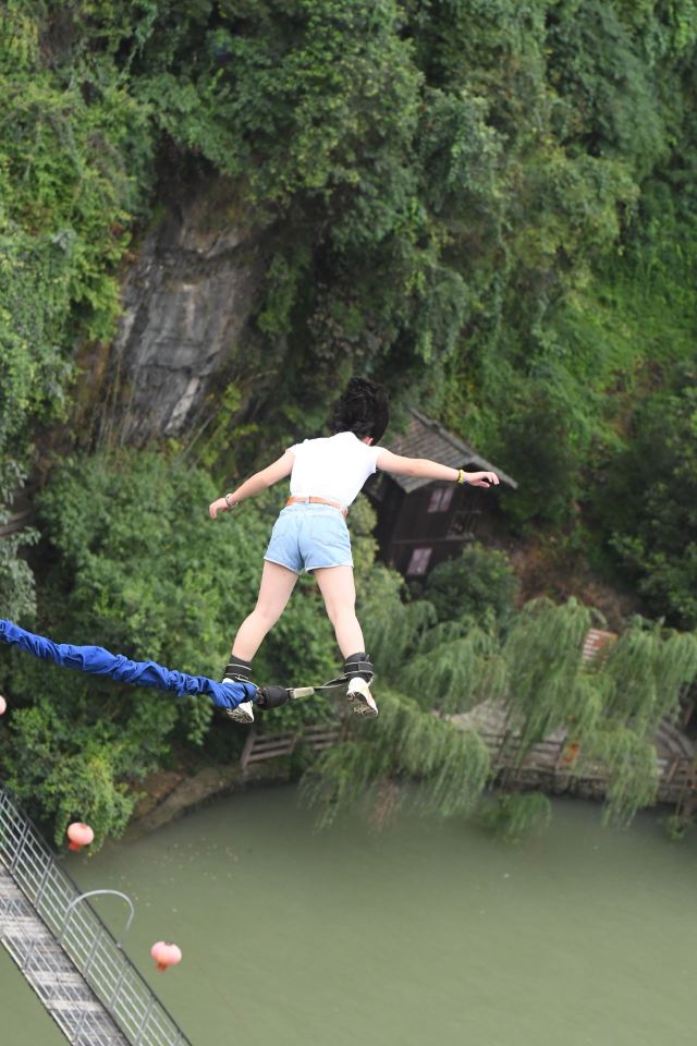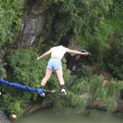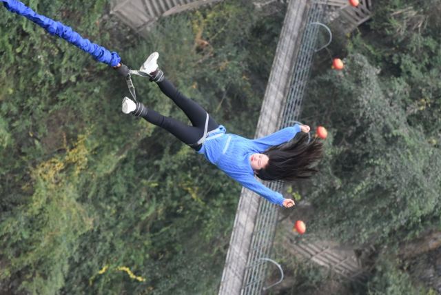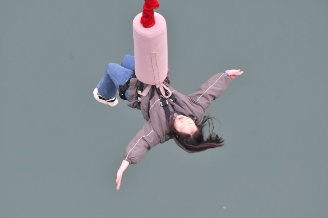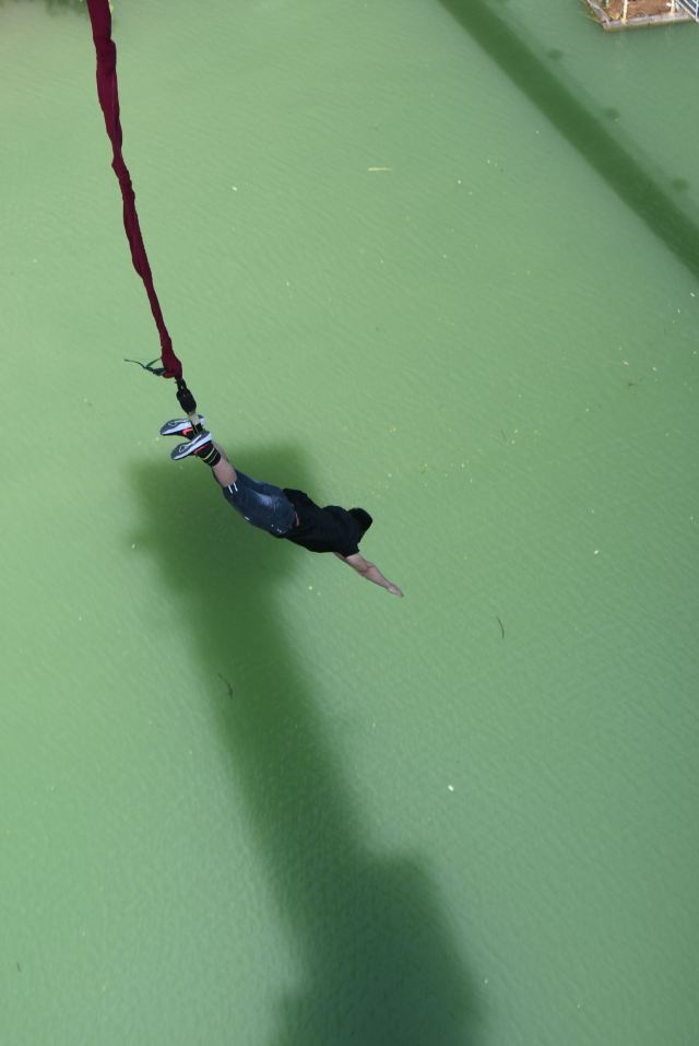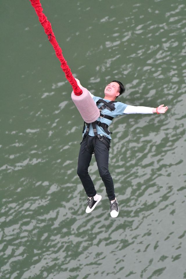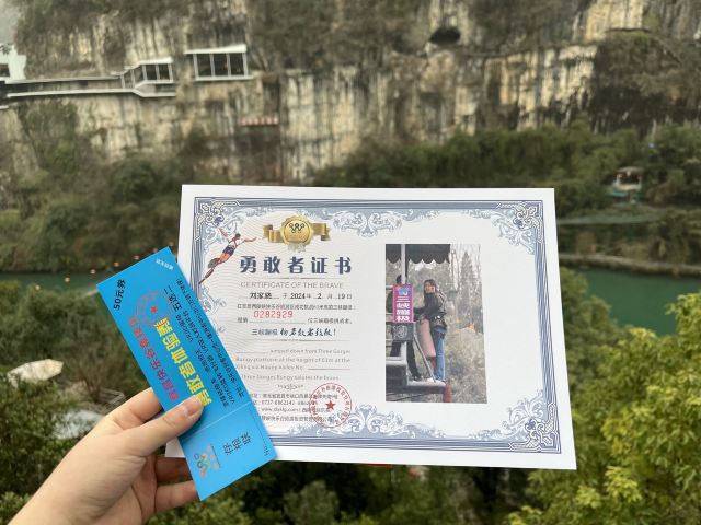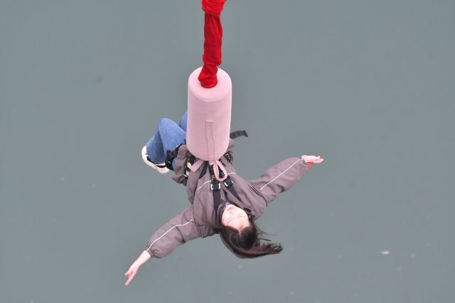 5分 超棒这里不对蹦极进行评价,只说说自己的感受。很多人问我,蹦极是什么感觉。爽吗?很爽!刺激吗?很刺激!害怕吗?很害怕!但我最想说其实是没感觉,因为那自由落体飞速下降的几秒里脑海中瞬间迸发出的太多,以至于根本来不及想他们是什么。只能依稀记得脚离开跳台,身体随地心引力不受控制下坠时候的恐慌,记得双脚感受到被牵引绳挂住后的狂喜,记得躺在蹦极台底下接泊船上时的飘忽不确定,记得双脚踩在平实的地面时的踏实沉稳。我是笑着跳下来了,但是我也哭了,眼泪鼻涕一把的流却不知道究竟所为何,只能用从未有过的嚎啕大哭来宣泄心中满满溢出的情感。最后会说的只有四个字“活着真好”!我曾一直幻想着与死亡擦肩而过后会放下一切,淡然面对以后的人生,然而切身体会过之后却更加的拿不起放不下,我漫漫人生长河中的一切人事物,所有的幸福与磨难都需要小心珍惜,是真正的从心底深处萌生的爱与珍惜。