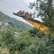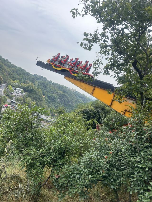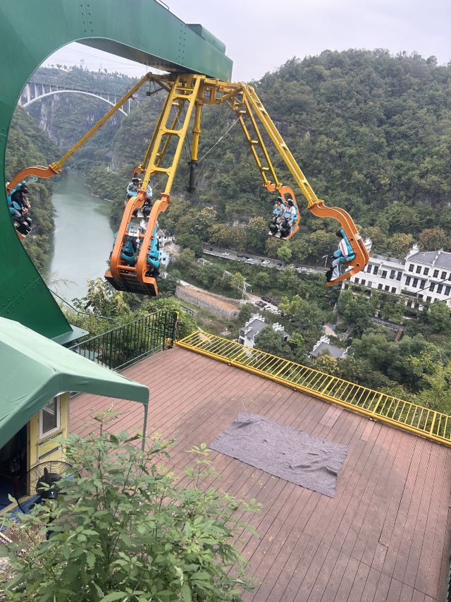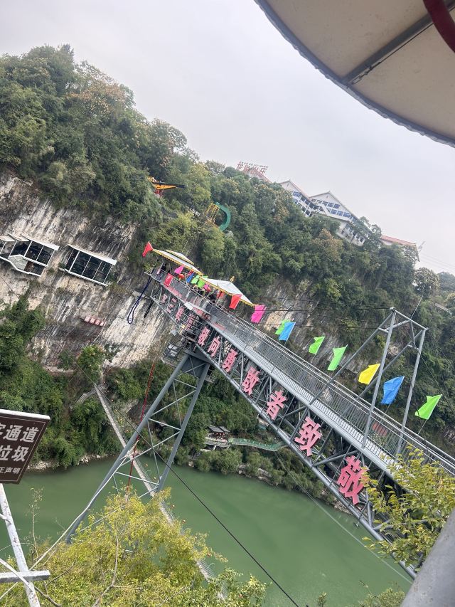 2、快乐谷不在通票内,票价35元,是一座结合悬崖峡谷的游乐园,在三游洞大桥北侧,与南侧的三游洞隔桥相望,山脚下是万里长江第一溪-下牢溪。园内有项目三峡蹦极(人气最火,一次230元,不少游客在三游洞大桥上欣赏体验者的受虐过程)、悬崖跷跷板、悬崖飞轮、360悬崖摆锤、峡谷秋千、峡谷滑道、快乐飞翼、飞天滑索、真人CS野战、丛林穿越等。