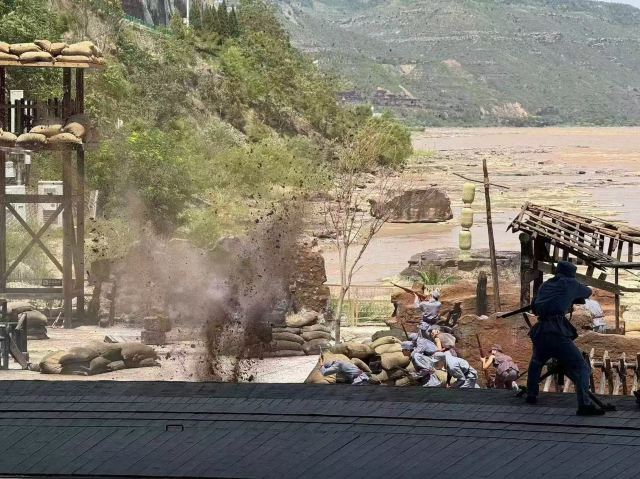 5分 超棒壶口瀑布黄河大合唱,一场在黄河之畔震撼上演的演出!以浩荡黄河为壮阔背景,整场45分钟的表演中,机械外环缓缓升起5米,演员们倾情演绎“宁跳黄河死,不做亡国奴”的悲壮牺牲场景,英勇与豪情交织,令人动容。演出中,仿真枪炮轰鸣,弹着点、爆炸点逼真再现战争硝烟,将观众带入那段烽火连天的岁月。根生与两位兄弟的深情离别,娘带着小孙女在黄河岸边寻觅牺牲父亲的身影,每一个场景都扣人心弦,催人泪下。而当全体演员与观众共同合唱《黄河大合唱》时,那激昂的旋律瞬间点燃每个人内心深处的家国情怀。歌声中,我们仿佛能感受到先辈们的英勇与牺牲,不知不觉间,泪水已悄然滑落。这场演出,不仅是一次视觉与听觉的盛宴,更是一次心灵的洗礼。它让我们深刻体会到家国情怀的厚重与伟大,激发起每个人内心深处的共鸣与感动。壶口瀑布黄河大合唱,一场不容错过的演出盛宴!