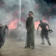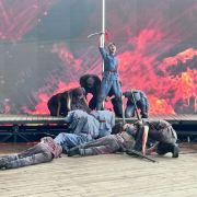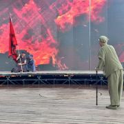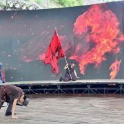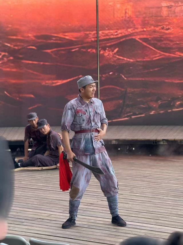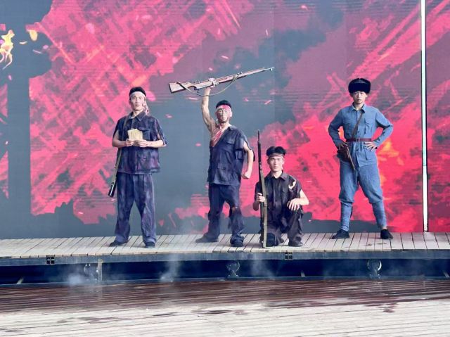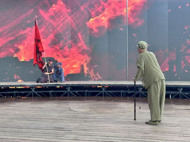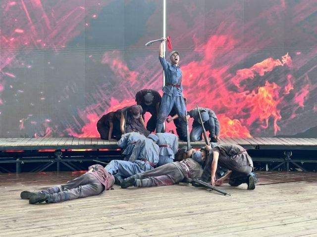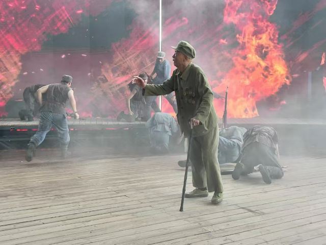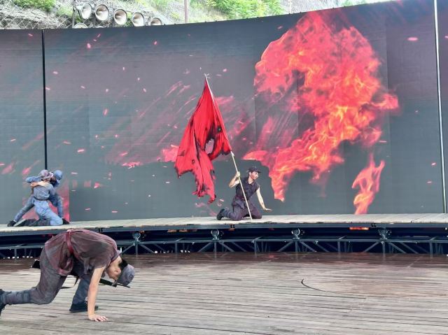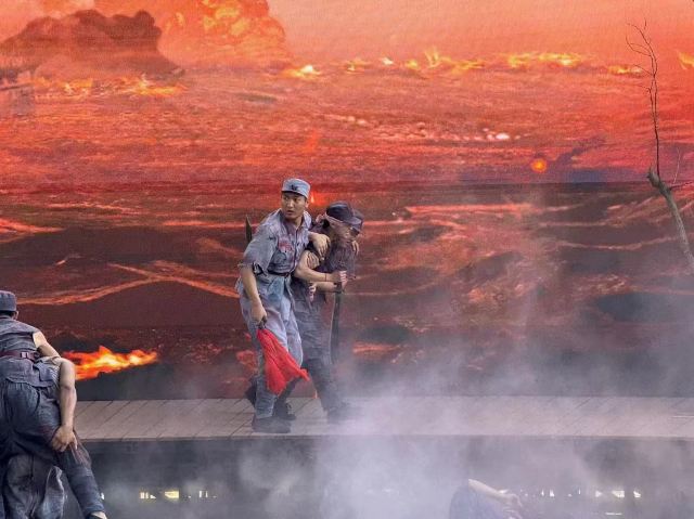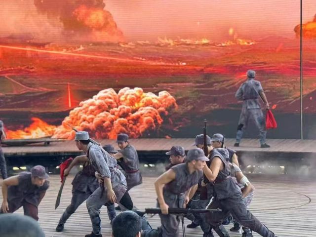 5分 超棒壶口瀑布黄河大合唱演出,以黄河为背景,45分钟演出时间里,机械外环升高5米,演员们倾情演绎悲壮历史。演出中,战士们英勇抗敌,牺牲场面震撼人心。根生兄弟在战乱中离别,娘带着小孙女在黄河岸边找寻牺牲的父亲,情感深沉。最后合唱《黄河大合唱》,家国情怀被深深激起,壮观景象令人震撼!
