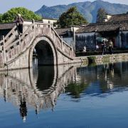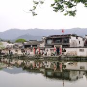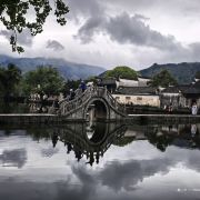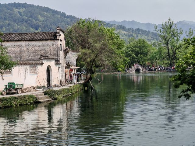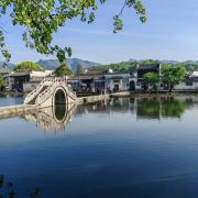 先欣赏位于宏村景区南端的精华景点之一南湖,是开凿于明万历丁未年(公元1607年)的弓形人工湖,水面开阔,穿湖而过的画桥为电影《卧虎藏龙》里李慕白牵马走过的地方。湖北岸有宏村-南湖书院,清朝时把原来湖边的六所私塾合并为一个书院,所以书院显得非常宽敞。看完南湖向北走,可顺道游览宏村-敬德堂、汪大燮故居(振绮堂)。