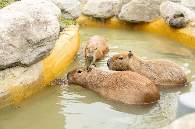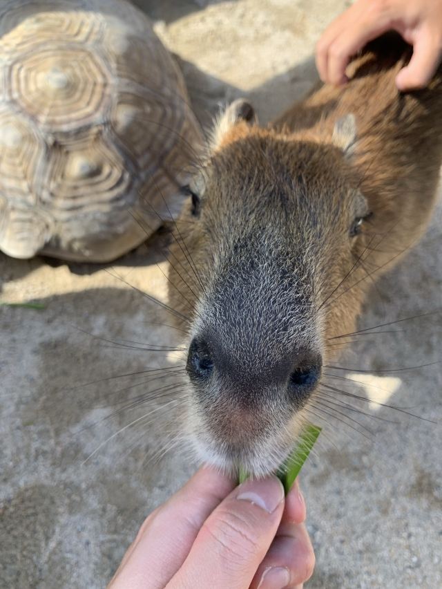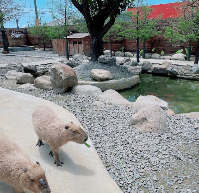 水豚疗愈区: 水豚君真的太疗愈啦!牠们懒洋洋地趴在地上,超萌的!我还看到牠们泡温泉,真的太享受了!