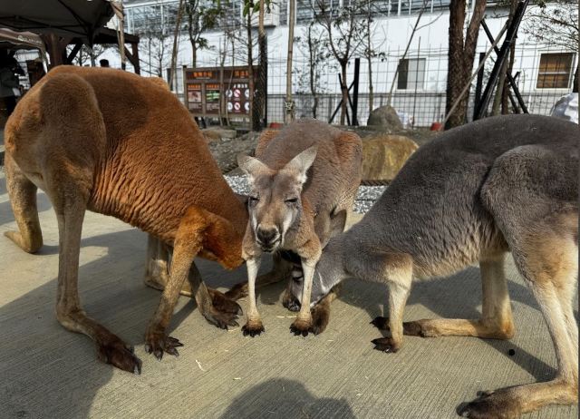袋鼠交互区: 这里的袋鼠超温驯的,可以买饲料喂牠们,牠们还会跳到你身边,超可爱的!不过要注意,袋鼠毕竟是野生动物,还是要保持适当距离喔!