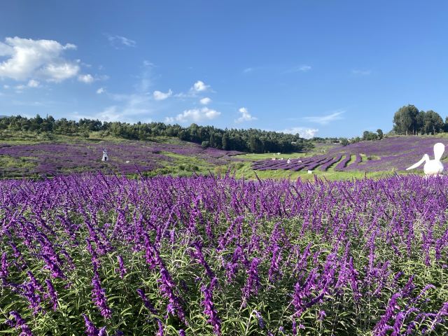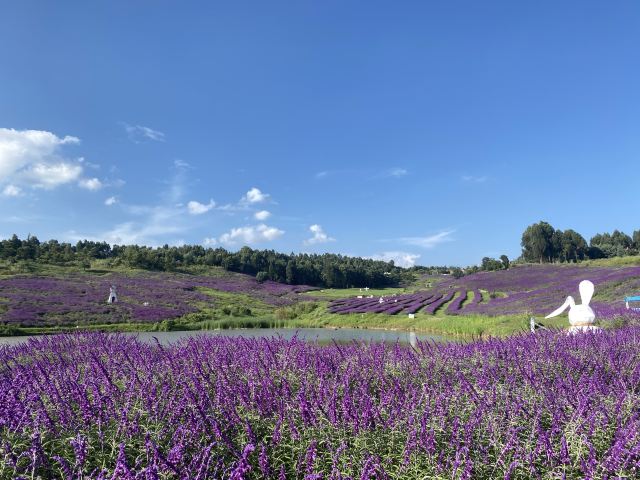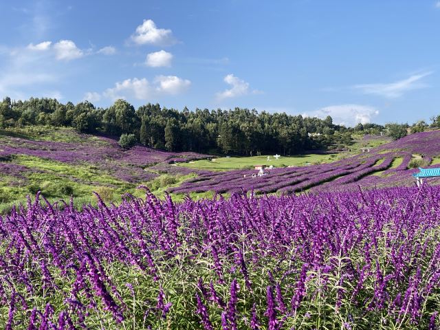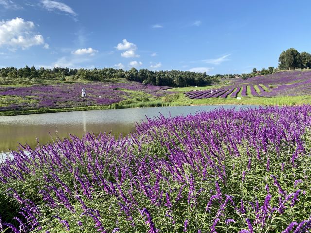 阳宗海度假区打造的百亩紫柳花海生态景观,非常出片,蔚蓝的天空,洁白的云朵和湛蓝的湖水,映衬着成片的紫柳花,犹如置身法国普罗旺斯的紫色海洋。