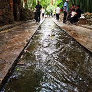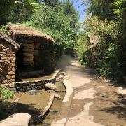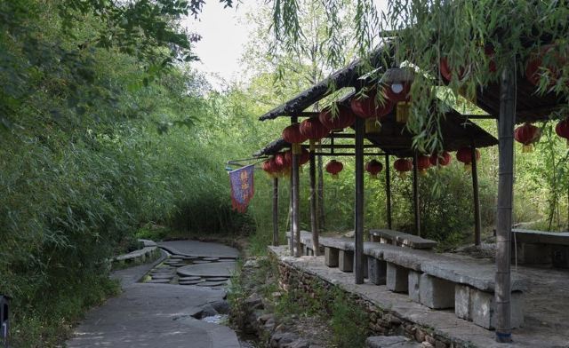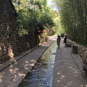 村子里的小路窄窄的,路边就是茂密的竹林,旁边还有一条溪流,水质清澈,一年四季不停地流淌,竹、泉二字名副其实。竹泉村最适合夏季避暑,翠绿的竹林和冰凉的泉水本身就是避暑神器。