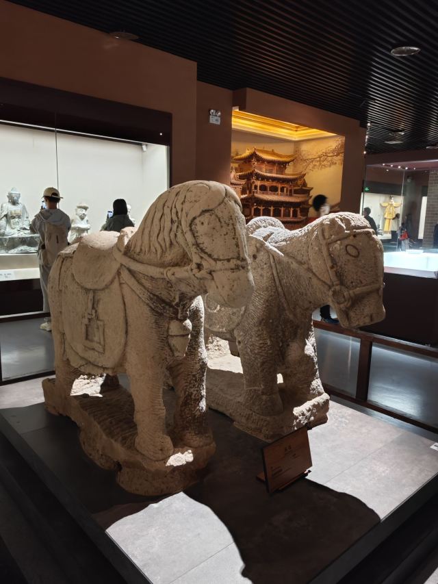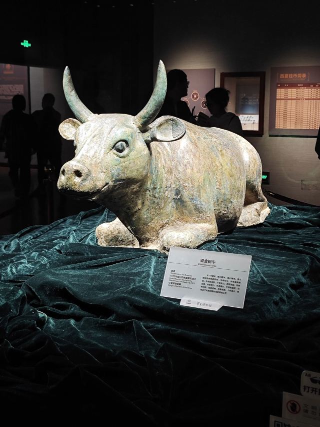 看到了镇馆之宝[Surprising][Surprising],鎏金铜牛🐮,个头儿挺大,保存很完整,能看到残留的鎏金,眼睛圆睁外突,双角弯曲,很是传神,生动逼真,可见古时铸造工艺水平已经很高了,与其同时出土的还有一件大石马🐴,虽然也是卧姿,但能看出四肢的壮硕,让人不禁想到碑林里站立大夏石马,给人整体的感觉很相似~