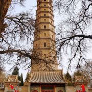 承天寺塔的每层之间的塔檐上下各挑出三层棱牙砖,各层檐角石榴状的铁柄上都挂着铁铃,微风吹过时,叮叮当当的作响。在承天塔的周围,有六棵400多年的老槐树,与照壁上精致的雕刻相映,充满了古朴的气息。寺内曾经还设有宁夏博物馆,现在已经迁走,如果你的时间比较充裕,在寺内散散步,听听古塔上的铁铃声,怀古之情油然而生。