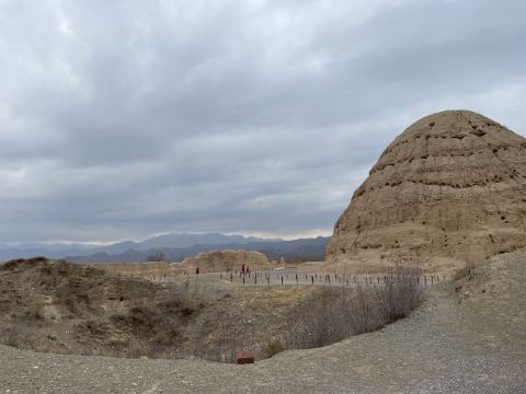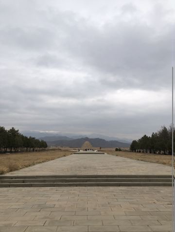 景区内昊王陵可以走近参观。巨大的倒立半圆形陵墓立于荒地之上,历史沧桑近在眼前,远处的贺兰山麓沟壑纵横,使人顿生悲凉壮阔的沧桑之感。