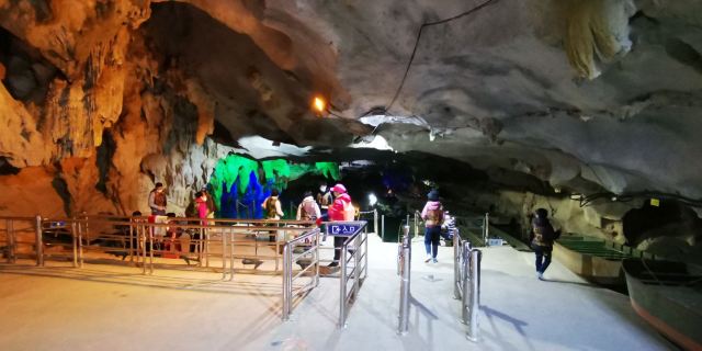 仙桥地下河由两段暗河和中间一段明河联成,全长约13公里,自西向东流,河面平静,游客乘舟览胜,游程约1.5小时,是一处非常神秘的自然奇观,其间的景 物,自然构成一首绝妙的诗,一幅美丽 的画,一个梦幻的传说,一场虚惊的刺激。河中怪物“似仙非仙”,“非仙似仙”,游人惊赞她“神矣险矣”,“叹为观止矣”。