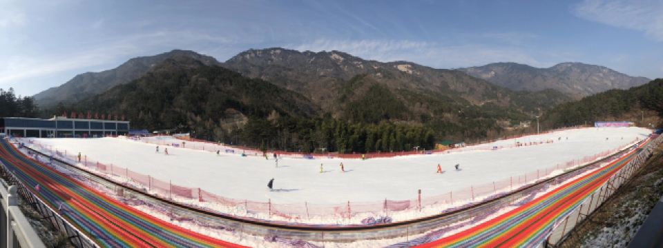 湖北英山南武当滑雪场位于大别山主峰南武当风景区腹地,海拔高度1729.13米,森林茂密、山峦起伏。滑雪场开设了雪地摩托车、冰上自行车、雪地主战坦克、雪地悠悠球、雪地碰碰车、雪地卡丁车等丰富多彩的雪上项目,建有初级道、中级道、娱雪区等,配套完善,是一个集户外滑雪、观光游览、休息度假、户外探险为一体的综合性旅游胜地。