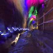 地下大峡谷的暗河深度达到百余米,常年水源充沛,景区利用这一优势开发了漂流。在漂流洞穴中增添了多处激光影像设备,突出炫目多彩的视觉效果,同时根据水流的流速和钟乳石的特殊造型,放置多处大型仿生动植物,在灯光映衬下如梦如幻。在这里体验洞中峡谷漂流,可以让你在游玩过程中放声尖叫,感受别样的刺激。