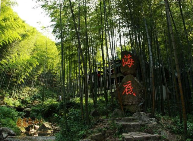 玩过镜湖后,坐缆车和徒步便需“兵分两路”,坐缆车往左走,几分钟就能到上客站;徒步往右走,约走20分钟到“海底”,即“竹海的底部”的意思,然后可以开始登山。