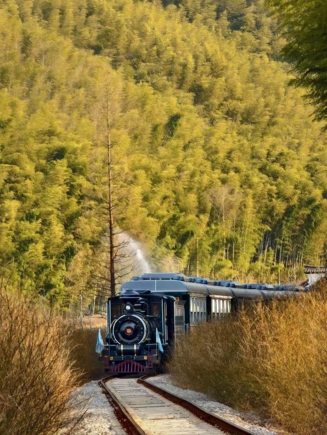 窑湖小镇宛如人间仙境,一湖碧水澄澈如镜,倒映着周边的青山绿树,无论是晴雨都别有一番韵味。这里竹林与茶田参错其间,宛如一个“世外桃源”。游客可以乘坐观光小火车穿梭在竹林、湖泊和茶园之间,整个火车轨道长约7公里,顺时针环绕小镇运行,全程约50分钟,可以一路穿越高架、隧道、山谷、竹林、茶田等不同场景,“沉浸式”游览整个小镇。