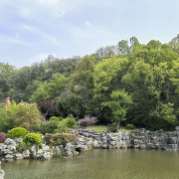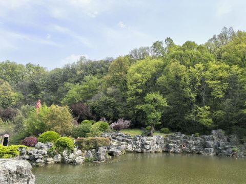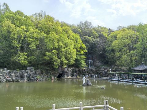 顺着环山游道向南到三角形的范竹亭,再往前的一线天颇有趣味,太湖石林组成了仅容一人通过的缝隙。接着经仙鹤楼(望西亭)、元宝石等景点后来到陶祖圣境-竹林长廊,走木栈道、过吊桥,抬头是青翠可爱的竹林,金镶玉竹、罗汉竹、紫竹……品种繁多,往下能看到低矮的太湖石林,带小孩的游客还可以去竹林里的生态游乐园玩玩秋千、滑梯。
