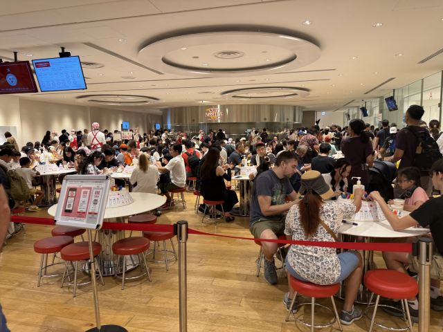 4分 满意一个拉面馆博物馆每天能有这么大的客流量,真的是不得不佩服。横滨区域的小众超人气景点,门票很便宜才500日元,高中生以下的小朋友都是免费的。一楼排队购票,如果需要体验拉面制作的话顺便一起预约上,上午10点半到的,拉面预约居然到了下午1点场。二楼开始是展馆,整个合味道拉面的历史和起源,各个时期发明的产品展示。然后就是一个小剧场,个人觉得是整个展馆的一个精华所在,这里讲述了合味道创业者安藤百福经历破产后,经过生活的经验和个人观点,开发出来了拉面。拉面杯也是通过往欧美推销的时候,根据当地客人的生活习惯开发出来的。拉面杯不是投入拉面,而且用杯子盖住面饼,这样的话面饼不会倾斜,冲泡的时候会更均匀。后面展厅有儿童娱乐和照相区域,三楼整体是拉面体验,到时间排队去自动贩卖机上买空杯子然后杯体创作,最后就是填充喜欢的食材封闭就行,整体参与感很强,建议小朋友全程自己操作。四楼是餐厅和一个餐饮店,这里的餐饮巨难吃,别来了!另外,四楼还有一个室外露天的观景台,面朝横滨湾,景色真的不错。