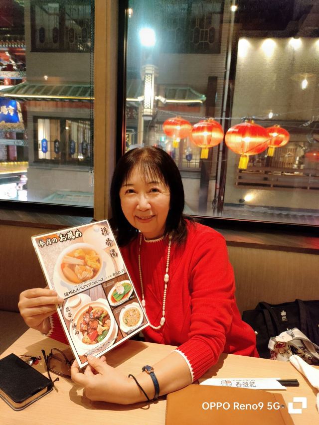 【中华街】确实太大了,也就走了一两条街,赶紧选一家餐厅吃饭吧,街上的游客很多,不想排队等候,看到了【西游记】这家香港餐厅就进去了,相比于楼下的热闹,还是楼上清净一些。服务员很敬业,招呼点菜并送上两杯水,时间不长菜肴陆续端上来,看着就是色香味俱全,我尤其爱吃肠粉,鲜虾馄饨,俩人吃的美美的饱饱的,真是太享受了,必须给与他家五星好评啊!