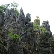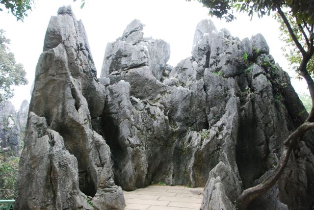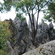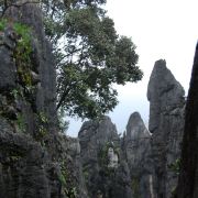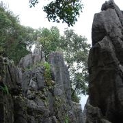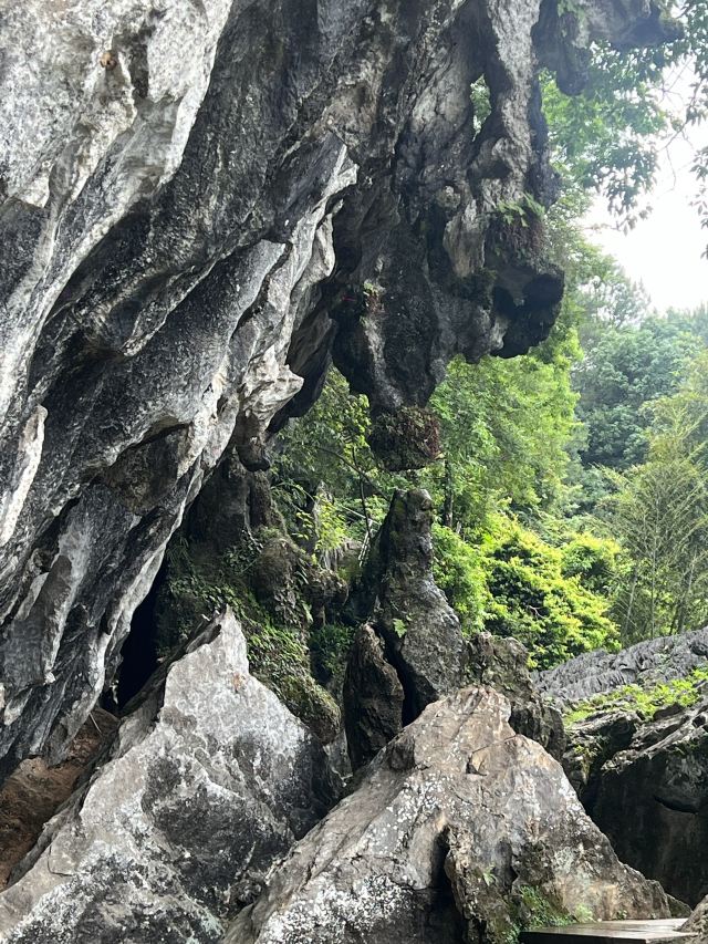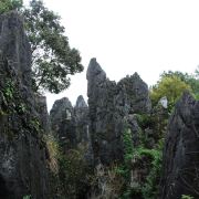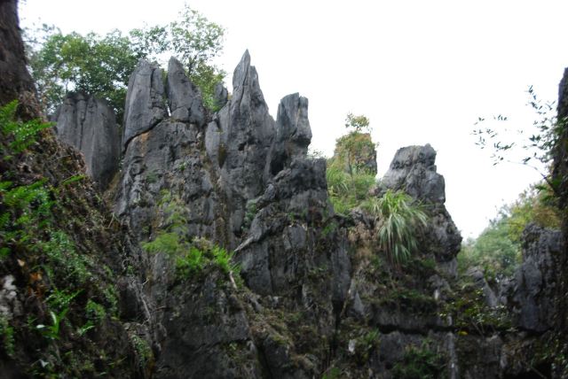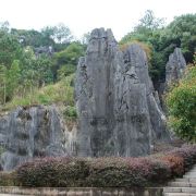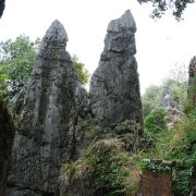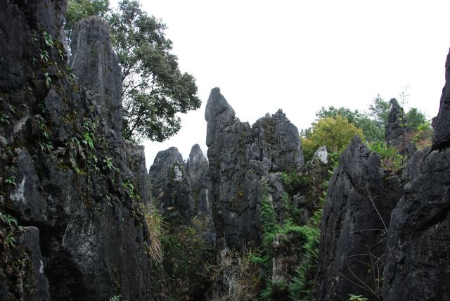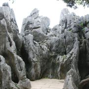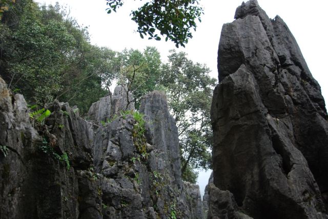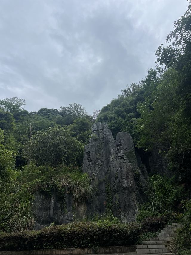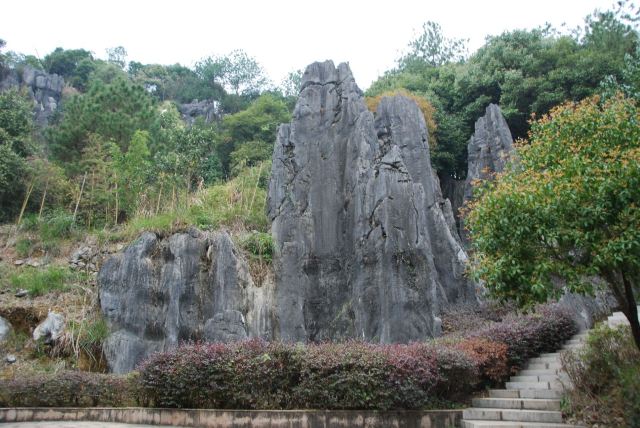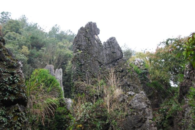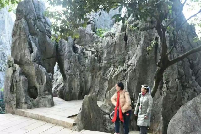 鳞隐石林景区是典型的喀斯特地貌,景区内包括鳞隐石林、洪云山石林、十八洞等风景片,总面积1.85平方公里,规模仅次于的云南石林,堪称全国第二,被评为国家重点风景名胜区。景区中的岩石表面多呈鱼鳞片状,又因“鳞隐”取“天故隐其迹”之意,故而得名。石林初的开发可追溯至清雍正年间,由当地名士赖翘千、赖允升两兄弟历时六年在其中修整出道路,并建造了亭台楼阁及书院。景区内耸立着石芽、石锥、石柱、石笋400余座,高达36米。石林内植被丰富,宛若平地上生出的巨大盆景。怪石拟人状物,有三鼎岩、望天星、石猴抱桃、黑熊护笋、八戒照镜、石龟探洞、老虎扑石、玉兔望月、古钟悬挂等景点。石林中还有一巨大峭壁,约长200米,高50米,经千万年风雕雨蚀,雕琢出的图案恍若敦煌壁画,耐人寻味。除地上石林外,地下溶洞也值得一探。溶洞称为“冰室”,方圆数丈,可容百人,盛夏入内则暑气全消。其中十八洞位于鳞隐石林入口处的黄狮岩内,分上、中、下三层。主洞长217米,支洞不计其数,洞中有洞,状若迷宫。洞中钟乳千姿百态,加之内有一泓清泉,在石林景观中颇为罕见。洪云山石林距鳞隐石林1.5公里,面积约0.56平方公里。这里的石林并不十分高大,但地表有溶斗洼地,布满着多种形态的石芽和石柱;而汇集于洼地内的地表水流通过灰岩裂隙下渗,自其下部的洪云洞流出,清澈泉流终年不断。洪云洞内的钟乳石等化学溶积物仍在发育之中,具有很高的观赏价值和研究价值。主要景点有:桃源活水、岩峡岩、金鸡报晓、松鼠伏壁等30多处。