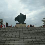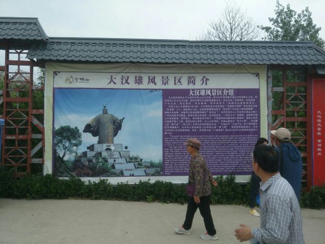 永城芒砀山大汉雄风景区地处豫、皖、苏、鲁四省的结合之处。被称为河南省的东大门,素有“豫东门户”之称。景区其得天独厚的文化资源,优越的地理位置,迷人的自然风光正吸引各界人士前来观光、游览。景区规划以汉文化为主题,旨在将景区打造成集养生文化、旅游观光、休闲度假、户外运动于一体的复合型景区。景区主峰海拔156.8米,作为景区标志性建筑的“汉高祖刘邦像”就坐落在主峰之上,塑像高达39.9米,被誉为“亚洲第一高历史人物铜塑雕像”。除了山巅高耸的刘邦雕像外,还存有三国英雄张飞屯兵的山寨“张飞寨”,南坡有高祖庙遗址,水浒108将中的三位地煞樊瑞、项充、李衮聚义的“三星道观”遗址以及汉代礼制建筑遗址也汇聚于此。