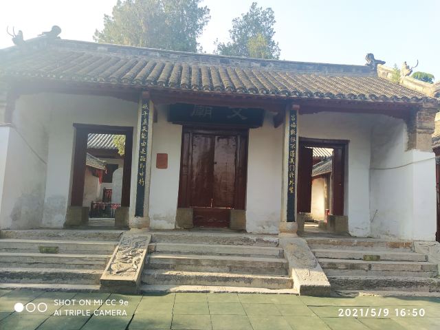 现存文庙为清代建筑坐北朝南,在豫皖苏鲁四省交界地区是一处比较有名的孔子纪念地。文庙院内有两棵古柏和三通石碑分立两边,其中一棵柏树斜依在乾隆十五年孔子第七十一代孙孔昭焕撰文的《勒石碑记》上,形成“柏抱碑”的奇观,右边的柏树在清代咸丰年间清军和捻军在芒砀山大战时曾遭火烧,但现仍枝繁叶茂。两棵古柏之间的青石台阶雕有云龙,称“龙踏”,只有皇帝来参拜孔子时才能走。