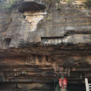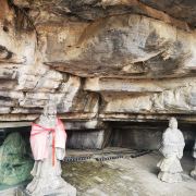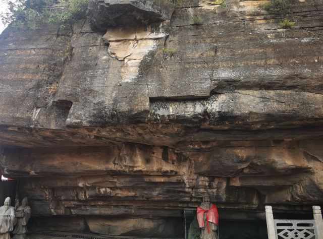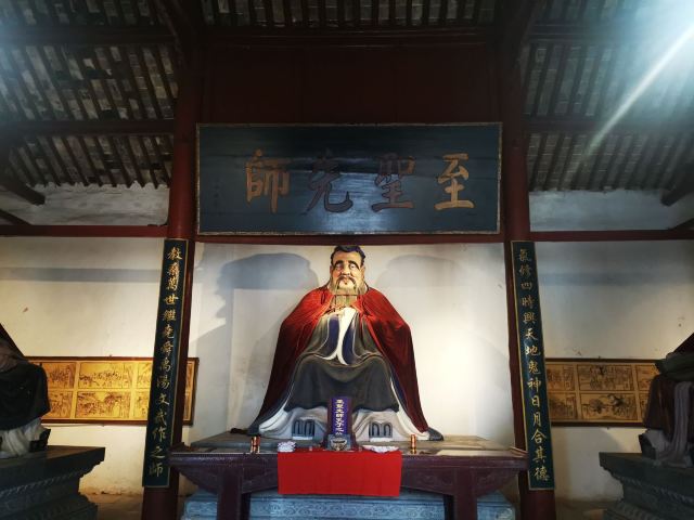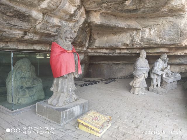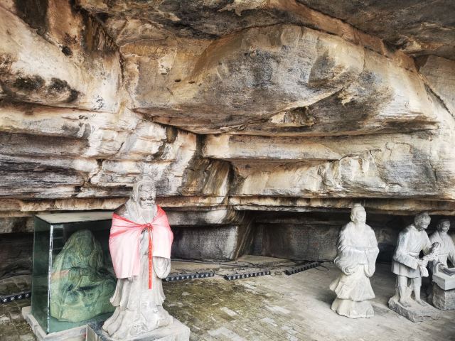 孔子避雨处位于夫子山南麓,是一个天然崖洞,因当年孔子周游列国时曾在此避雨而得名。洞中至今仍存有一座屈膝盘腿、坐北朝南的孔子雕像,此处的“石崖滴翠”是永城古八景之一。