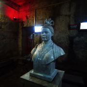 还没进门就有一家美食坊,只不过不是旺季都不开门,然后就是拍汉服照的汉服馆带化妆,可以坐飞天魔毯,也可以通过一层一层的楼梯到达梁孝王王后陵,有文创店可以集章,有好多章