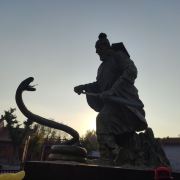 刘邦斩蛇之后随即扯旗造反,在芒砀山一带招兵买马,经数年征战,终于在公元前202年建立西汉王朝。汉文帝时,为纪念刘邦在此斩蛇造反,在斩蛇处立碑建庙。历经千年,碑庙几经损坏,又几经修建。刘邦斩蛇碑吸引人之处除了有关它的历史传说以外,还由于碑体所呈现的神奇幻影——每当夜幕降临,若以灯光映照碑体时,一身披银甲的武士便跃然碑体之上,如同当年刘邦再现,令人惊叹,为天下奇观。